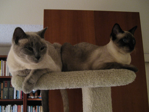 My wonderful Siamese cats, Bunny and Skye, enjoying